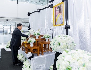 นายกลินท์ สารสิน ประธานคณะกรรมการ บริษัท โตโยต้า มอเตอร์ ประเทศไทย จำกัด นำคณะผู้บริหารและพนักงาน เข้าร่วมพิธีลงนามถวายความอาลัยแด่สมเด็จพระนางเจ้าสิริกิติ์ พระบรมราชินีนาถ พระบรมราชชนนีพันปีหลวง เพื่อน้อมรำลึกถึงพระมหากรุณาธิคุณอันหาที่สุดมิได้ ณ อาคารสำนักงานใหญ่ บริษัท โตโยต้า มอเตอร์ ประเทศไทย จำกัด