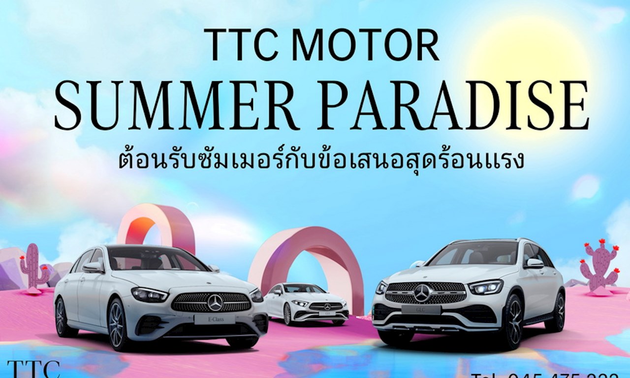 TTC Motor จัดแคมเปญรับอุณหภูมิร้อนแรงของอากาศ และความต้องการของผู้บริโภค กับแคมเปญ SUMMERPARADISE ที่มอบข้อเสนอพิเศษ MBSP Extra Guarantee นานสูงสุด 8 ปี ดอกเบี้ย 0% นานสูงสุด 4 ปี พร้อมประกันภัยชั้นหนึ่งนานสูงสุด 1 ปี MBSP Extra Guarantee นานสูงสุด 5 ปี พร้อม MB Protection นานสูงสุด 2 ปี ที่ TTC Motor ครบจบทุกเรื่องเบนซ์ ตั้งแต่วันนี้-30 เมษายน 2566 *เงื่อนไขเฉพาะรุ่นที่ร่วมรายการ