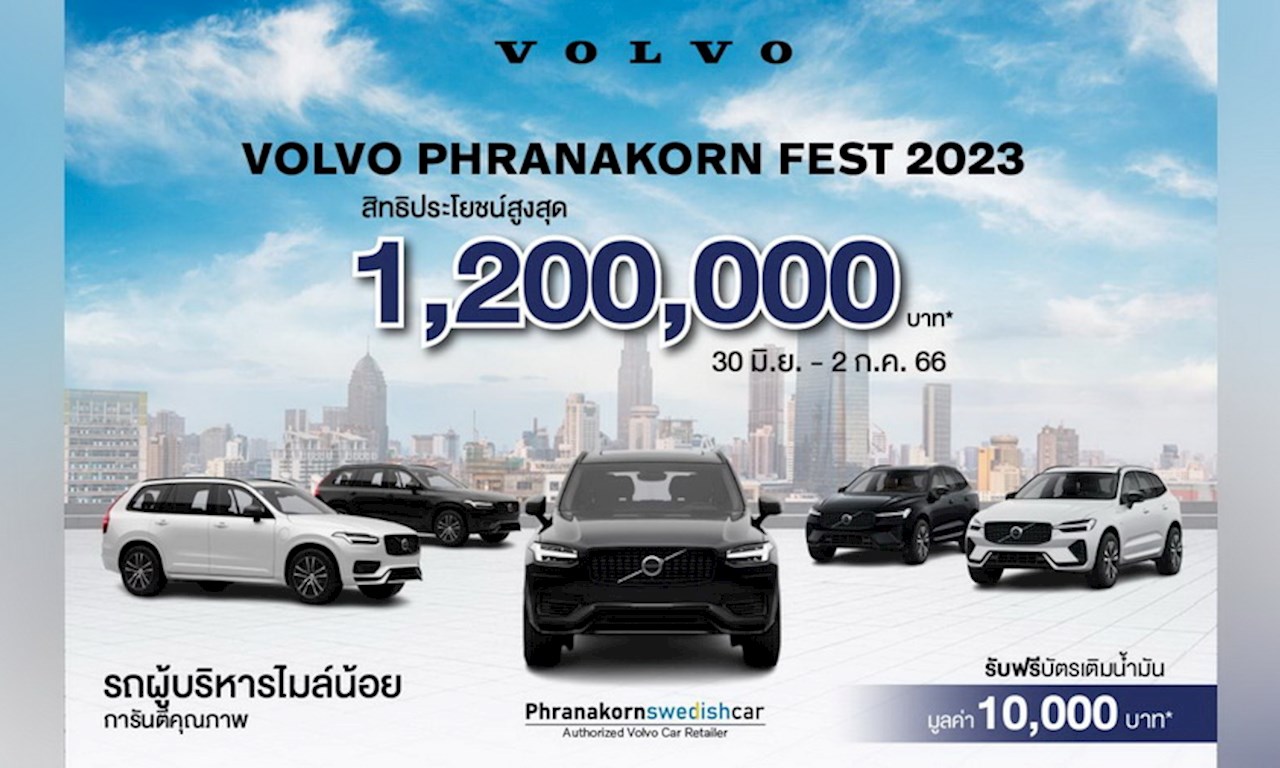 บริษัท พระนคร สวีดิช คาร์ จำกัด หนึ่งในผู้แทนจำหน่ายรถยนต์วอลโว่อย่างเป็นทางการในประเทศไทย ผู้ให้บริการครบคลุม ทั้งงานขายและงานให้บริการหลังการขาย แบบ One Stop Service จัดงานมหกรรมสุดพิเศษแห่งปี Volvo Phranakorn Fest 2023 กับครั้งแรกของการจำหน่ายรถยนต์วอลโว่ผู้บริหารป้ายแดง เลขไมล์น้อย ที่ยกขบวนมาให้เลือกซื้อแบบได้สัมผัสคันจริงกันที่งานฯ พร้อมด้วยสิทธิพิเศษสูงสุด 1,200,000 บาท โดยงานนี้จัดขึ้นเพียงแค่ 3 วันเท่านั้น เริ่มตั้งแต่วันศุกร์ที่ 30 มิถุนายน ถึงวันอาทิตย์ที่ 2 กรกฎาคม 2566 ที่โชว์รูม และลานกิจกรรม วอลโว่ พระนคร สำนักงานใหญ่ ถนนวิภาวดี