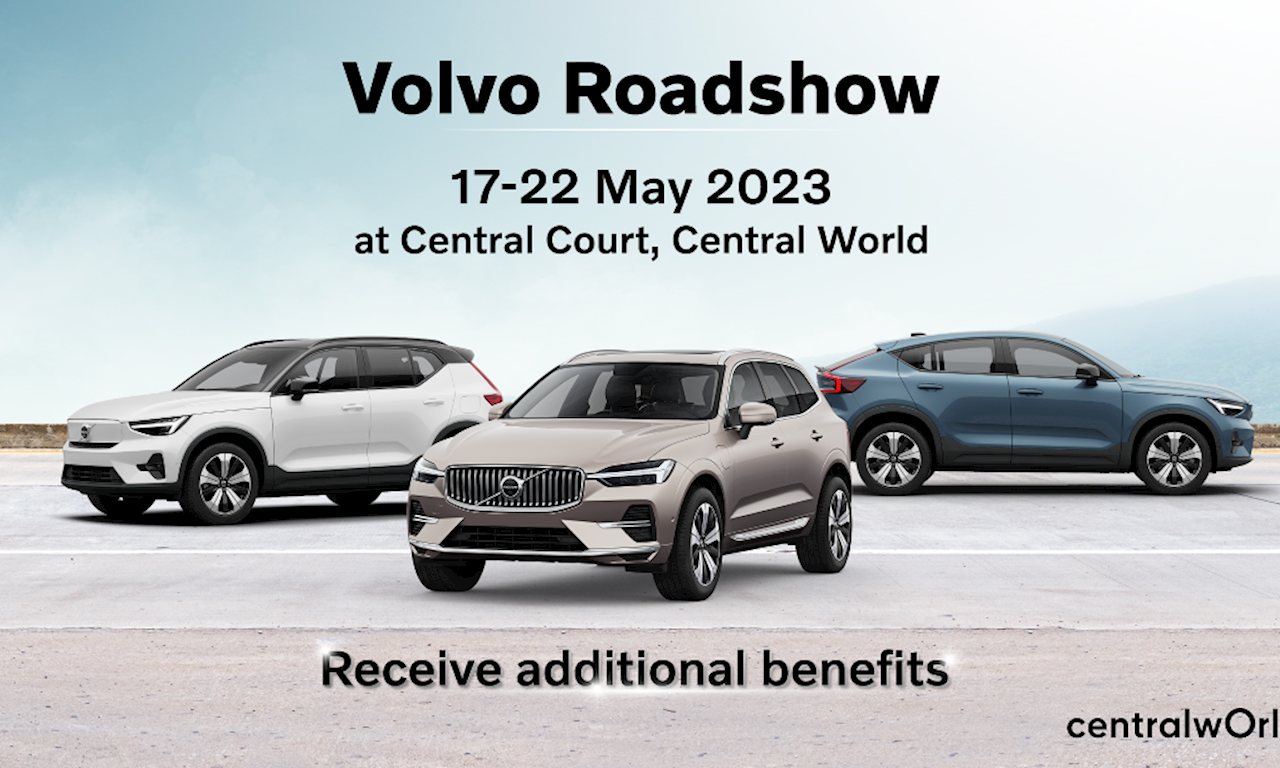 วอลโว่ คาร์ (ประเทศไทย) ชวนผู้สนใจร่วมชมนวัตกรรมยานยนต์ที่มาพร้อมเทคโลยีเพื่อความปลอดภัยภายใต้ดีไซน์เรียบหรูเป็นเอกลักษณ์แบบฉบับสแกนดิเนเวียนในงาน Volvo Roadshow ซึ่งวอลโว่ได้นำรถยนต์รุ่นใหม่ล่าสุดทุกรุ่นมาจัดแสดง ณ ศูนย์การค้าเซ็นทรัลเวิลด์ โซน Central Court ชั้น 1 ระหว่างวันที่ 17 - 22 พฤษภาคม 2565 พร้อมมอบข้อเสนอสุดพิเศษ