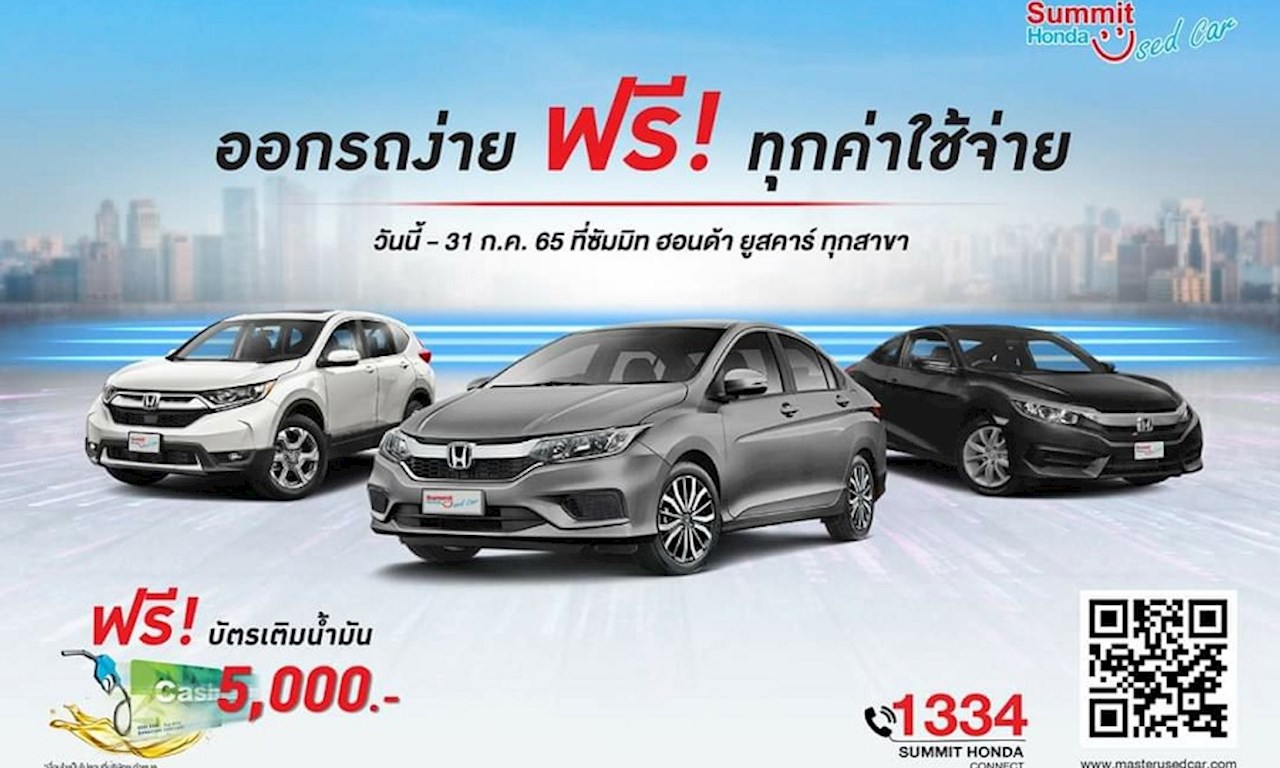 นับเป็นโอกาสทองของผู้ที่กำลังสนใจรถยนต์ ฮอนด้า มือสอง เพราะ ซัมมิท ฮอนด้า ยูสคาร์ ยกทัพรถยนต์ ฮอนด้า มือสองสภาพดี มีการรับประกันมาตรฐาน มาให้สัมผัสและจับจองรวมกว่า 50 คัน อาทิ ฮอนด้า ซิตี้ 1.5 V ปี 2017 เริ่มต้น 439,000 บาท, ฮอนด้า ซิวิค 1.8 E ปี 2018 เริ่มต้น 669,000 บาท และ ซีอาร์-วี 2.4 EL ปี 2018 เริ่มต้นเพียง 969,000 บาท มาพร้อมหลากหลายข้อเสนอสุดพิเศษ