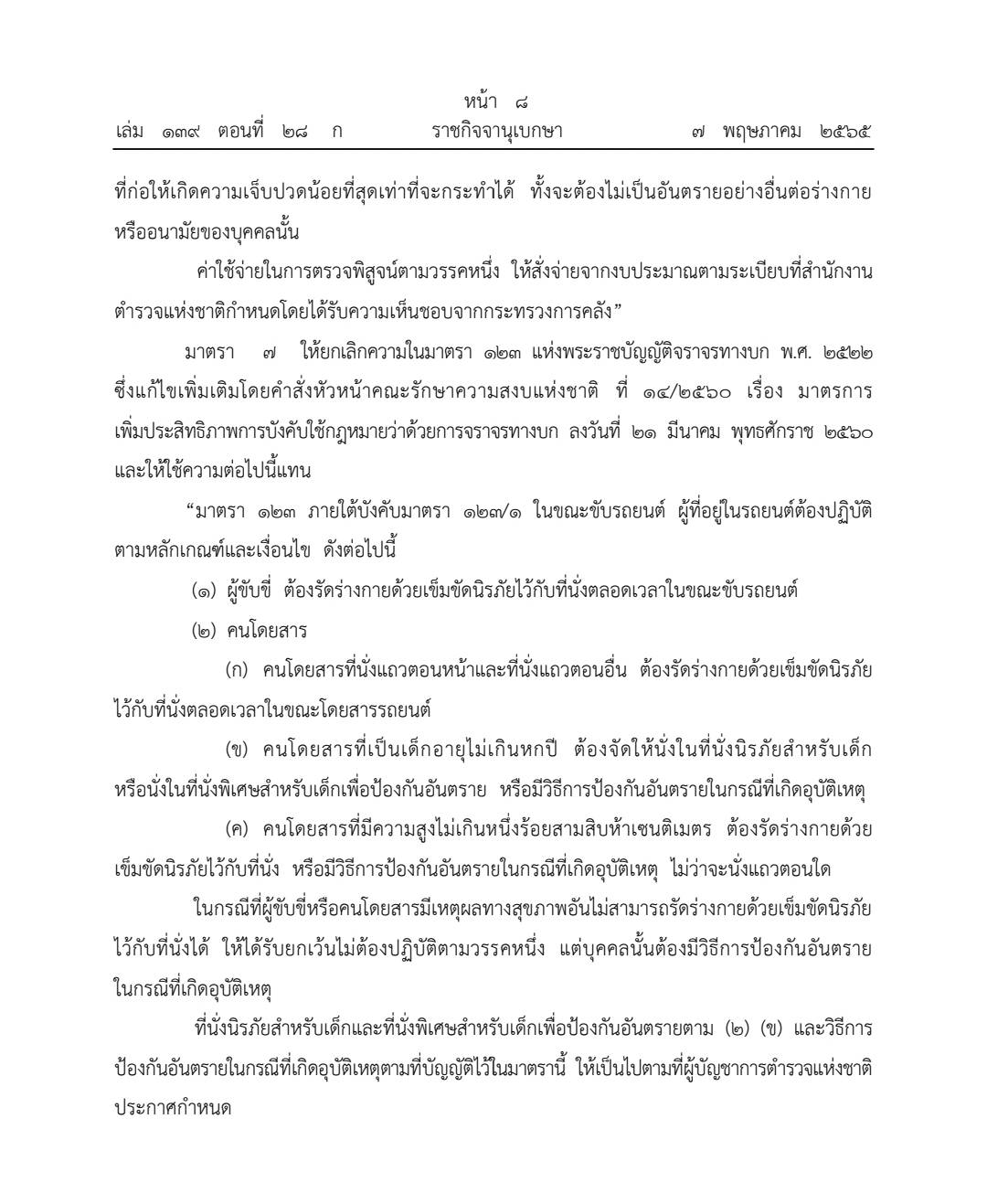 จากกรณีนี้ตามความข้อกฎหมายจะเห็นได้ว่า ไม่ได้บังคับว่าจะต้องใช้เพียงที่นั่งนิรภัยสำหรับเด็ก หรือ Car Seat เพียงอย่างเดียว แต่ยังระบุว่าจัดหาที่นั่งสำหรับเด็กเช่น การจัดให้เด็กนั่งและคาดเข็มขัดนิรภัยให้ หรืออาจใช้วิธีการป้องกันอื่น ๆ เช่น การนำเด็กมานั่งตักและคาดเข็มขัดนิรภัยให้ทั้งตัวเด็กและผู้ปกครอง ซึ่งลักษณะและวิธีการป้องกันดังกล่าวต้องรอให้สำนักงานตำรวจแห่งชาติร่างข้อกำหนดให้ชัดเจนว่าการติดตั้งหรือจัดหาที่นั่งแต่ละแบบนั้นจะมีรูปแบบอย่างไร แบบไหนที่สามารถนำมาใช้ได้หรือไม่ได้