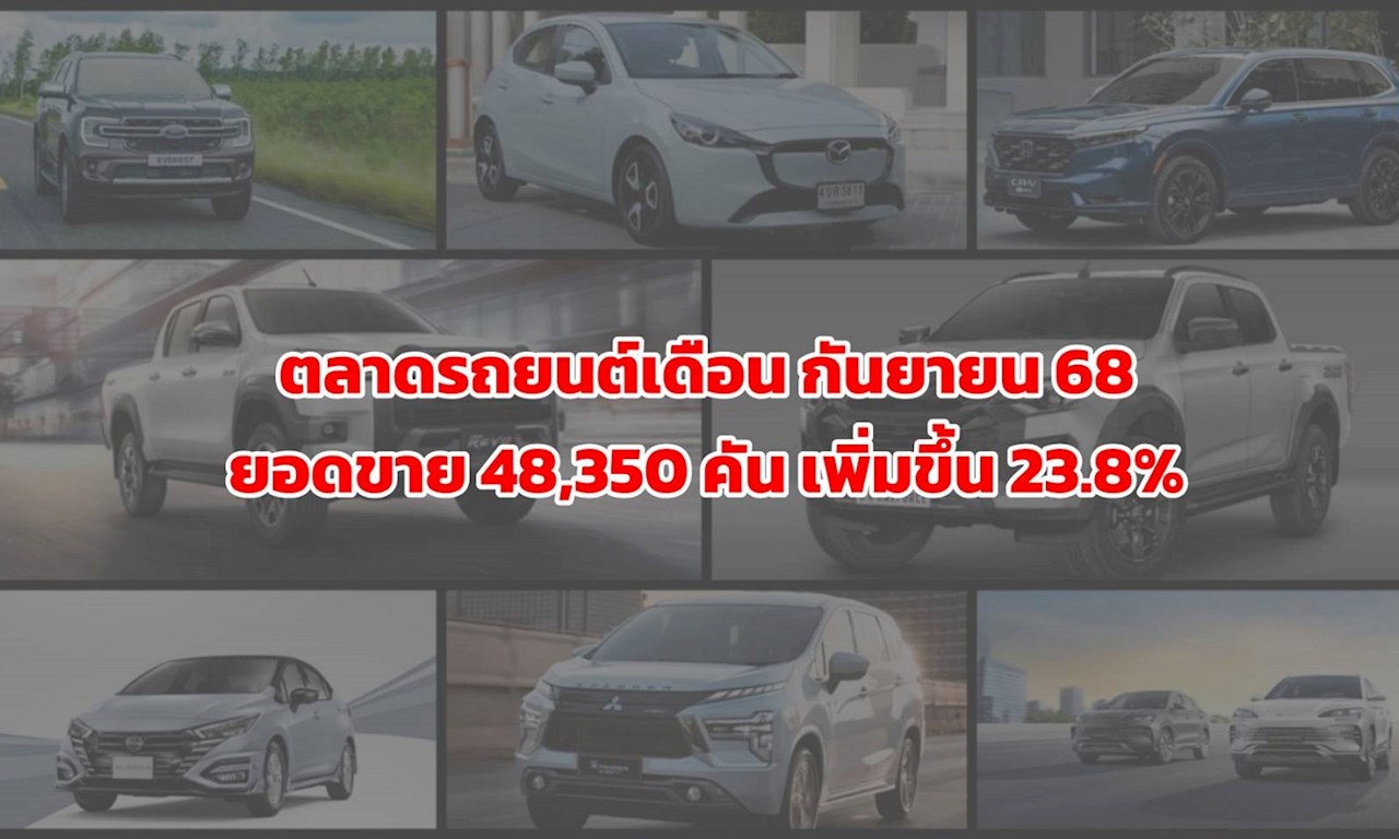 หมายเหตุ : ข้อมูลที่ปรากฏในรายงานนี้อ้างอิงจากยอดขายรถยนต์ระหว่างวันที่ 01–30 กันยายน 2568 โดยได้รับข้อมูลจาก บริษัท ตรีเพชรอีซูซุเซลส์ จำกัด, บริษัท ฮอนด้า ออโตโมบิล (ประเทศไทย) จำกัด, บริษัท มิตซูบิชิ มอเตอร์ส (ประเทศไทย) จำกัด, บริษัท ฟอร์ด มอเตอร์ส คัมปะนี (ประเทศไทย) จำกัด, บริษัท เอ็มจี เซลส์ (ประเทศไทย) จำกัด และ บริษัท เกรท วอลล์ มอเตอร์ เซลล์ (ประเทศไทย) จำกัด