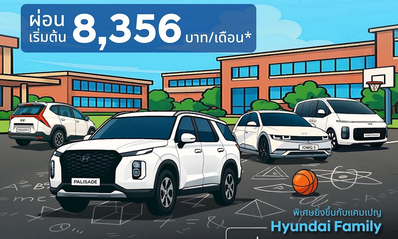 เพียงจองรถฮุนไดรุ่นใดก็ได้ ระหว่างวันที่ 13 - 19 พฤษภาคม 2568 และรับรถภายใน 30 มิถุนายน 2568 รับฟรี! Samsung Galaxy Tab A9 มูลค่า 5,990 บาท* สมาร์ตไอเท็มที่ช่วยให้เด็ก ๆ เรียนรู้ได้ทุกที่ทุกเวลา พร้อมข้อเสนอสุดคุ้มที่ออกแบบมาเพื่อ “ครอบครัวทุกสไตล์” ไม่ว่าจะเป็นสายเทคโนโลยี สายผจญภัย หรือคุณพ่อคุณแม่ยุคใหม่ ผ่อนต่ำ เริ่มต้นเพียง 8,356 บาทต่อเดือน* หรือรับส่วนลดเงินสดสูงสุด 280,000 บาท*