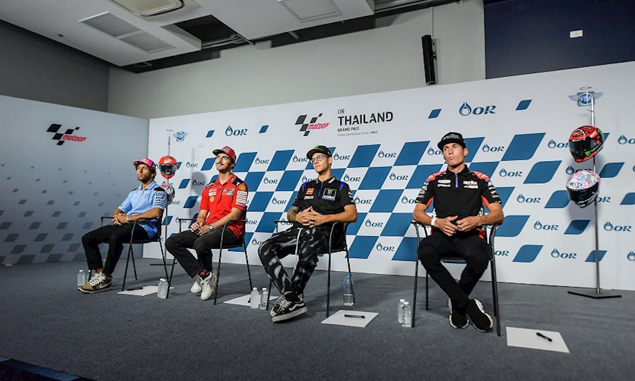 ขณะเดียวกันก็มีงานแถลงข่าวการเข้าสู่ โออาร์ ไทยแลนด์ กรังด์ปรีซ์ โดยมี 4 นักบิดที่ลุ้นแชมป์โลก โมโตจีพี 2022 ให้สัมภาษณ์กับสื่อมวลชนนำโดย ฟาบิโอ กวาร์ตาราโร แชมป์โลกชาวฝรั่งเศสจาก มอนสเตอร์ ยามาฮ่า, ฟรานเชสโก้ บันยาญ่า ผู้ท้าชิงชาวอิตาเลียนจาก ดูคาติ เลโนโว ทีม, อเลช เอสปาร์กาโร นักบิดสแปนิชจาก อพริเลีย เรซซิ่ง และ เอเนีย บาสเตียนินี นักบิดอิตาเลียนจาก เกรซินี เรซซิ่ง โดยทั้งหมดไม่มีความกังวลกับสภาพอากาศ และเชื่อว่าเรซจะสามารถดำเนินไปได้อย่างราบรื่น