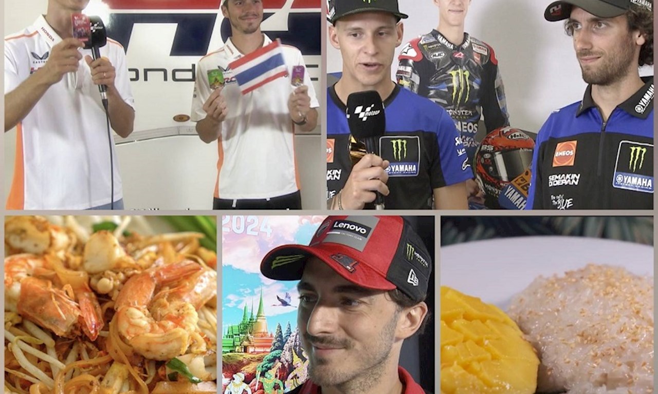 การกีฬาแห่งประเทศไทย จัดทีมบินลัดฟ้าสัมภาษณ์พิเศษ 6 หนุ่มนักบิดชื่อดังของโลกจาก 3 ทีมชั้นนำ ฮอนด้า,ยามาฮ่าและดูคาติ ที่ ทีที เซอร์กิต แอสเซน ประเทศเนเธอร์แลนด์ สังเวียนชื่อดังของโลก เรียกน้ำย่อยแฟนคลับชาวไทย ด้านโจอัน เมียร์ และ ลูก้า มารินี เผยหลงรักชายหาดและวัฒนธรรมและบรรยากาศของไทย ส่วนฟาบิโอ กวาร์ตาราโร ชอบอากาศที่ประเทศไทยแม้จะค่อนข้างร้อน โดย“ผัดไทย-ข้าวเหนียวมะม่วง” ขึ้นแท่นเมนูอาหารสุดโปรดนักบิดดัง ขณะที่เมนูโปรดของ ฟรานเชสโก้ บันยาญ่าคือ สะเต๊ะ และข้าวผัด รวมทั้งยังเผยถึงความประทับใจจากการแข่งสนามประเทศไทย ก่อนแข่งขันในเดือนตุลาคมนี้ที่ สนามช้าง อินเตอร์เนชั่นแนล เซอร์กิต จ.บุรีรัมย์