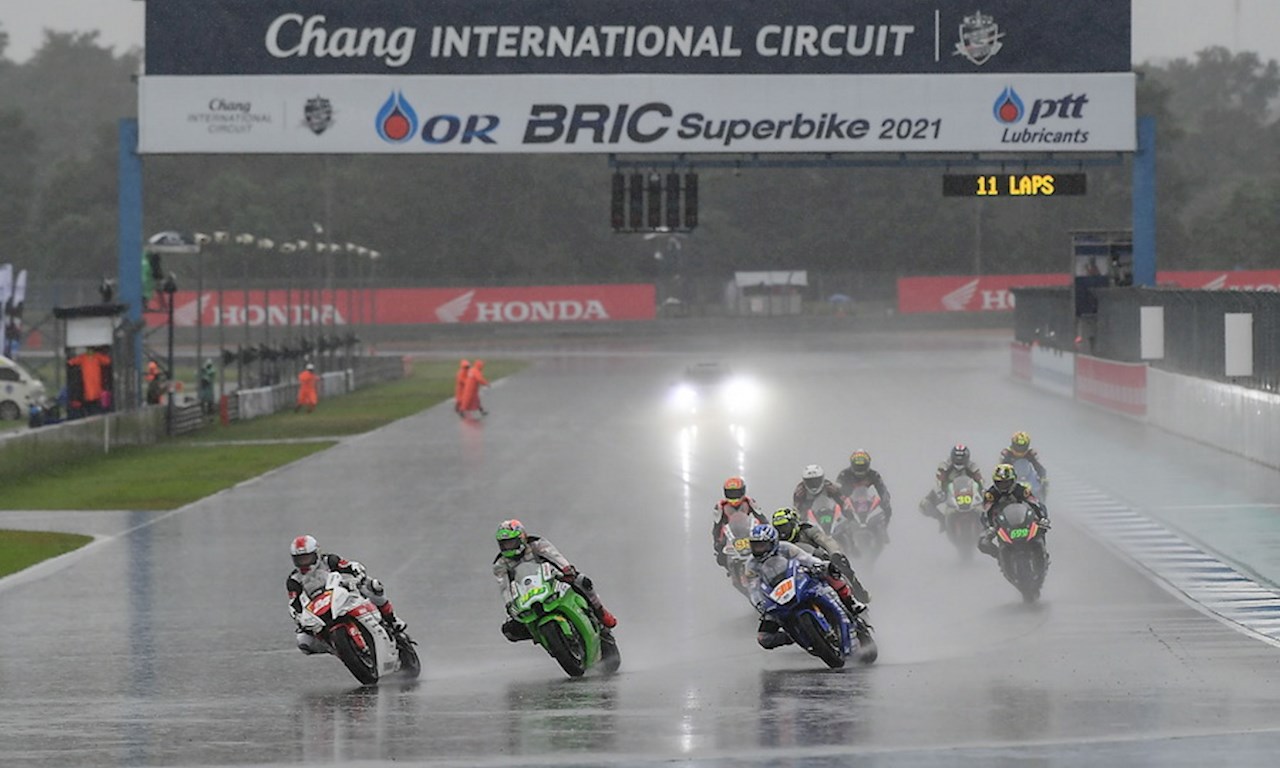 ศึกจักรยานยนต์ทางเรียบชิงแชมป์ประเทศไทย รายการ โออาร์ บีอาร์ไอซี ซูเปอร์ไบค์ 2021 สนาม 3 ดวลความเร็วเมื่อวันอาทิตย์ที่ 17 ตุลาคมที่ผ่านมา ที่ สนามช้าง อินเตอร์เนชั่นแนล เซอร์กิต จ.บุรีรัมย์ ภายใต้มาตรการทางสาธารณสุข โดยเกมทุกรุ่นต้องแข่งขันท่ามกลางฝนที่ตกลงมาอย่างหนักตลอดทั้งเรซ