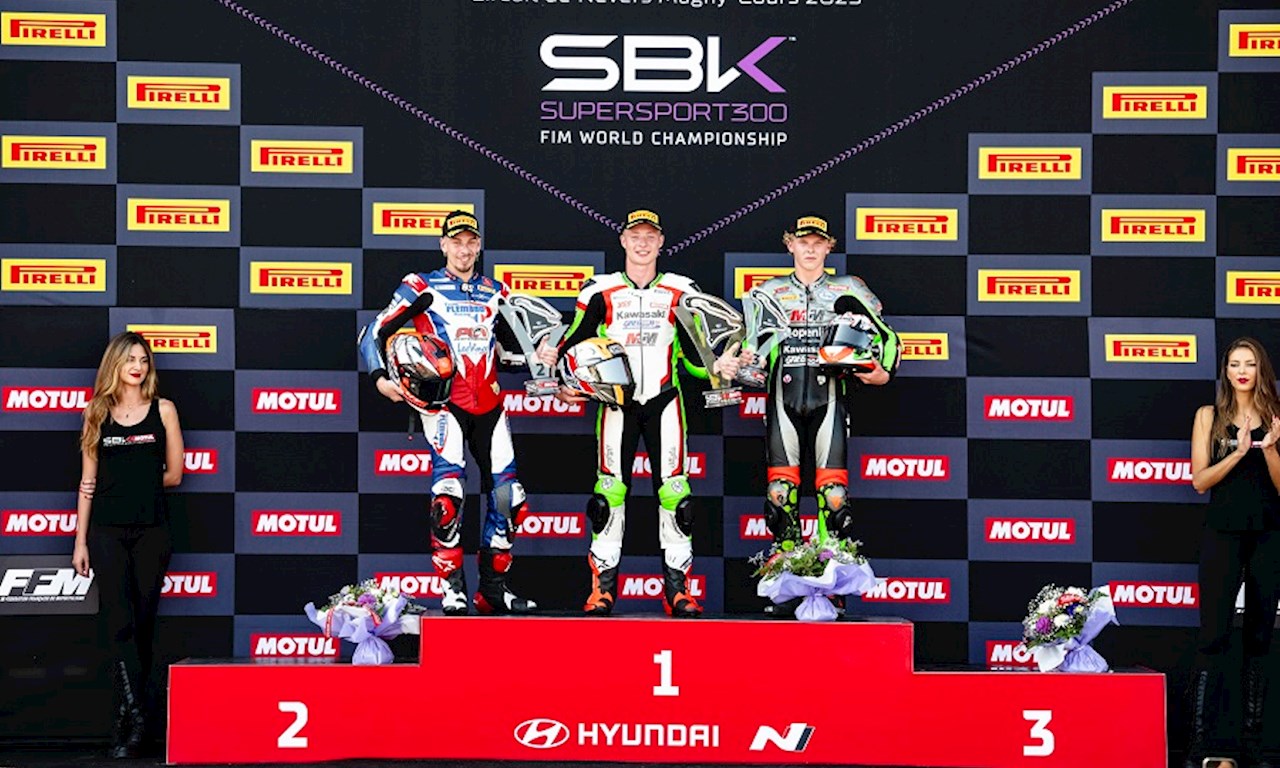 อีกรุ่นสำคัญคลาส 300 ซีซี WSSP300 ที่ต้องใช้คำว่าสุดยอดกับผลงาน "Double Winner" หลัง Jeffry Buis นักบิดหมายเลข 6 สังกัด MTM Kawasaki Racing Teamเช่นเดียวกัน และรถ NINJA400 กับโช้คอัพ YSS โช้คหลัง RRS และ ชุดอัพเกรดโช้คหน้า Z1R Open Cartridge กดเข้าเส้นชัยเป็นอันดับที่ 1 ได้ทั้งสองเรซ เก็บ 50 คะเเนนเต็มรวม 149 คะเเนน ขึ้นหัวตารางอันดับที่ 1 ทันทีลุ้นแชมป์ประจำปีกับการแข่งขันที่เหลือเพียง 3 สนามเท่านั้น