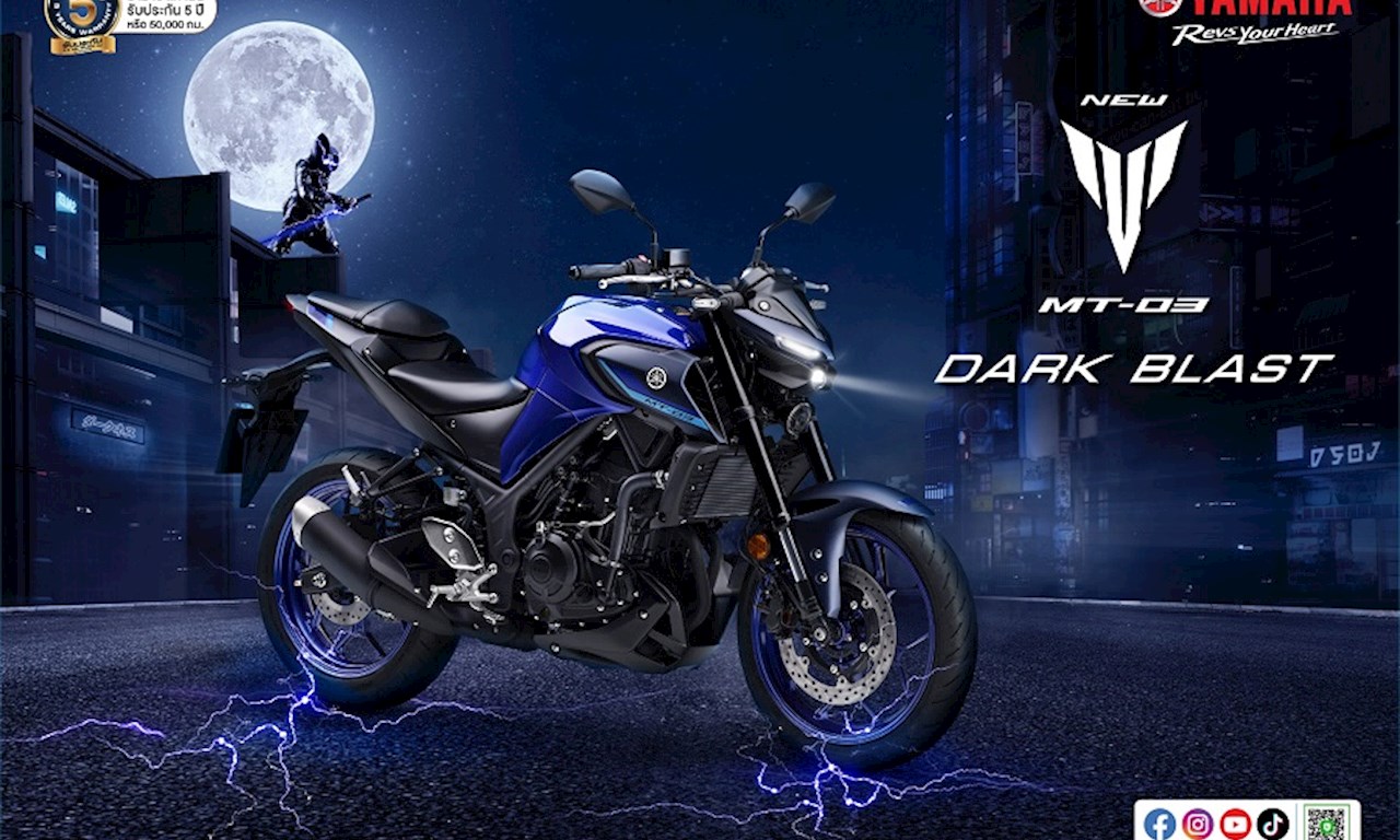 สำหรับ “NEW YAMAHA MT-03…DARK BLAST” สีใหม่ มาพร้อมกับสีสันใหม่ 2 สี 2 สไตล์ คือ “สีน้ำเงิน” และ “สีดำ” พร้อมวางจำหน่ายในราคาแนะนำเริ่มต้นที่ 196,500 บาท และตอกย้ำคุณภาพด้วยการรับประกัน 5 ปี หรือ 50,000 กิโลเมตร