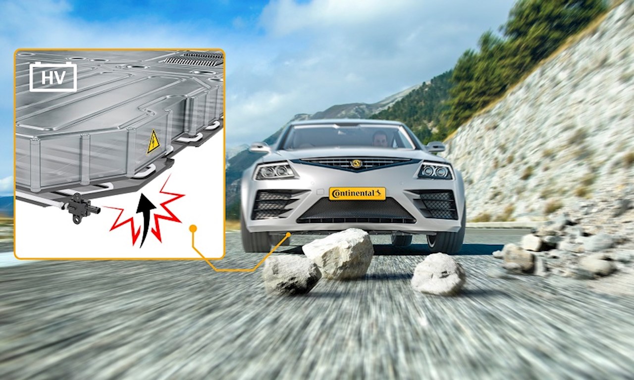 ปกติแล้วแบตเตอรี่ลิเธียมไอออนของรถยนต์ไฟฟ้าจะรวมอยู่ในตำแหน่งใต้พื้นซึ่งน้ำหนักของแบตเตอรี่มีส่วนทำให้จุดศูนย์ถ่วงต่ำและได้รับการปกป้องอย่างดีจากโครงสร้างรถยนต์ โดยมีข้อยกเว้นสองประการ คือ วัตถุที่มีความเร็วสูง เช่น สายคาดสามารถหมุนขึ้นและทำให้พื้นเสียหายได้ และความเร็วต่ำการสัมผัสพื้นในระหว่างการซ้อมรบการจอดรถอาจทำให้เกิดความเสียหายได้เช่นกัน ดังนั้น รถยนต์ไฟฟ้าจึงมีฝาปิดขนาดใหญ่และมักจะหนัก เพื่อป้องกันช่องแบตเตอรี่จากด้านล่าง อย่างไรก็ตาม คนขับจะตัดสินว่าต้องตรวจสอบรถที่อู่หรือไม่เมื่อเกิดการกระแทก Johannes Clemm กรรมการผู้จัดการ Continental Safety Engineering International ในเมืองอัลเซเนากล่าวว่า "นี่ไม่ใช่สถานการณ์ที่น่าพอใจเพราะใต้ท้องรถมองเห็นได้ค่อยข้างยาก บวกกับต้องใช้สายตาที่ผ่านการฝึกอบรมมาเพื่อประเมินความเสียหายที่แท้จริง" เพื่อช่วยในสถานการณ์นี้และทำให้การป้องกันใต้พื้นแบบเบาเป็นไปได้คอนติเนนทอลได้พัฒนาโซลูชันการตรวจจับแรงกระแทกของแบตเตอรี่ที่ใช้เซ็นเซอร์แรงดัน